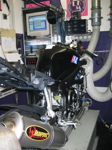 Hennes Löhr: Im Moment bestimmt die Hayabusa oder die B-King. Das Serienmotorrad ist nicht allzu teuer und ein Tuning-Kit kostet 3.000 Euro. Am Ende hat man dann ein 210 PS Gerät in der Garage. Bei den 600ern oder 1000ern schenken sich die Japaner untereinander fast nichts. Bei den 600ern ist die Suzuki ein wenig schwächer, dafür war die 1000er in den letzten Jahren immer ein ganz beliebtes und auch dankbares Tuningmotorrad. Großes Interesse verspüren wir aber auch meine Händlerkollegen heuer nach der CBR 1000 RR. Etwas schwierig ist es im Moment mit der Aprilia RSV 4. Da erreichten die ersten Modelle welche wir aber auch die Journalisten zu testen bekamen, die angegebenen Leistungswerte. Zuletzt hatten wir hier aber Motorräder, welche doch deutlich unter den Leistungsangaben vom Hersteller lagen. Da hab ich dann natürlich Erklärungsbedarf, wenn der Kunde hier ein Tuningpaket von mir verkauft bekommt und die Maschine dann gerade mal die Werksangabe auf den Prüfstand drückt.