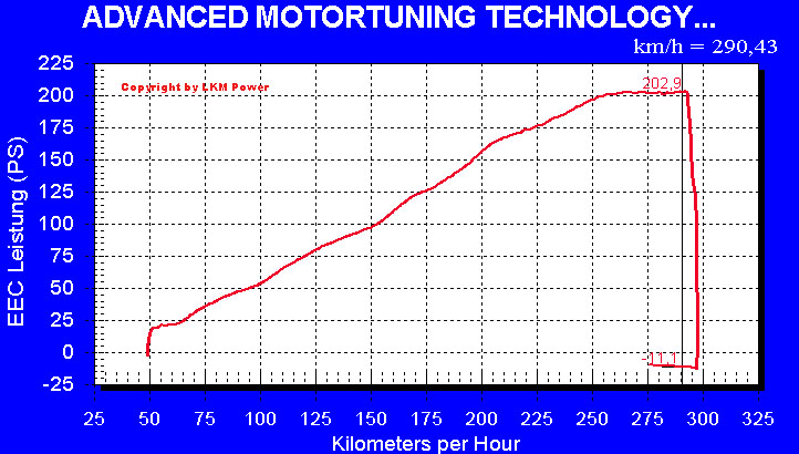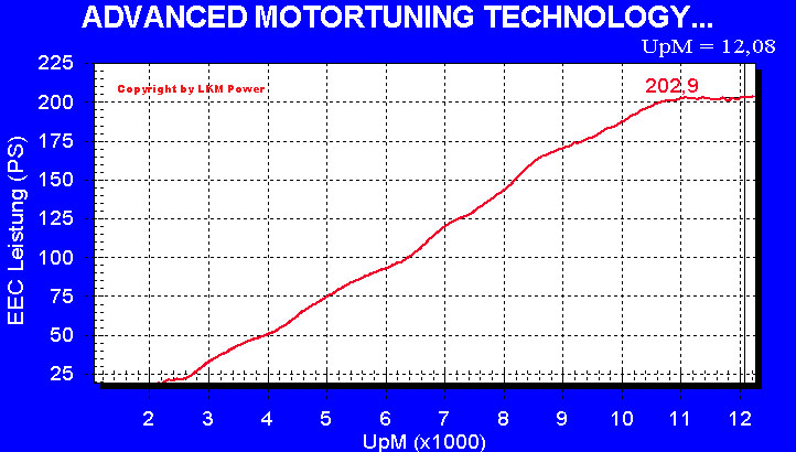 LKM GP-Prototyp 998 cc Leistung an der Kupplung: 214,0 PS Leistung am Hinterrad: 202,9 PS |