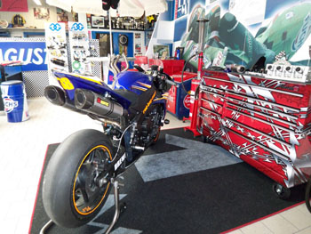 Dankbare Rennfahrer bringen ihre Trophäen. So stellt man sich eine deutsche Werkstatt vor. Sauber, ordentlich und penibel liegt hier alles auf seinem Platz.